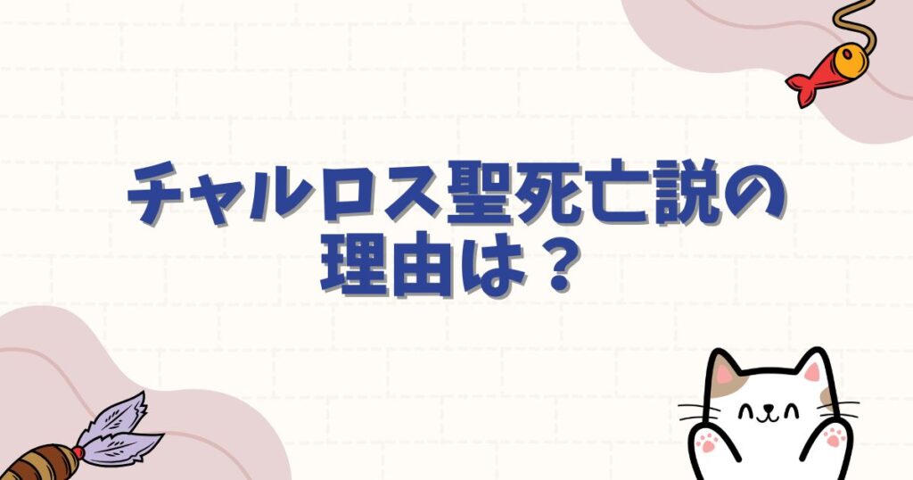 結論から言うと、現時点ではチャルロス聖死亡の事実は確認されておらず、生存している可能性が極めて高い状況です。