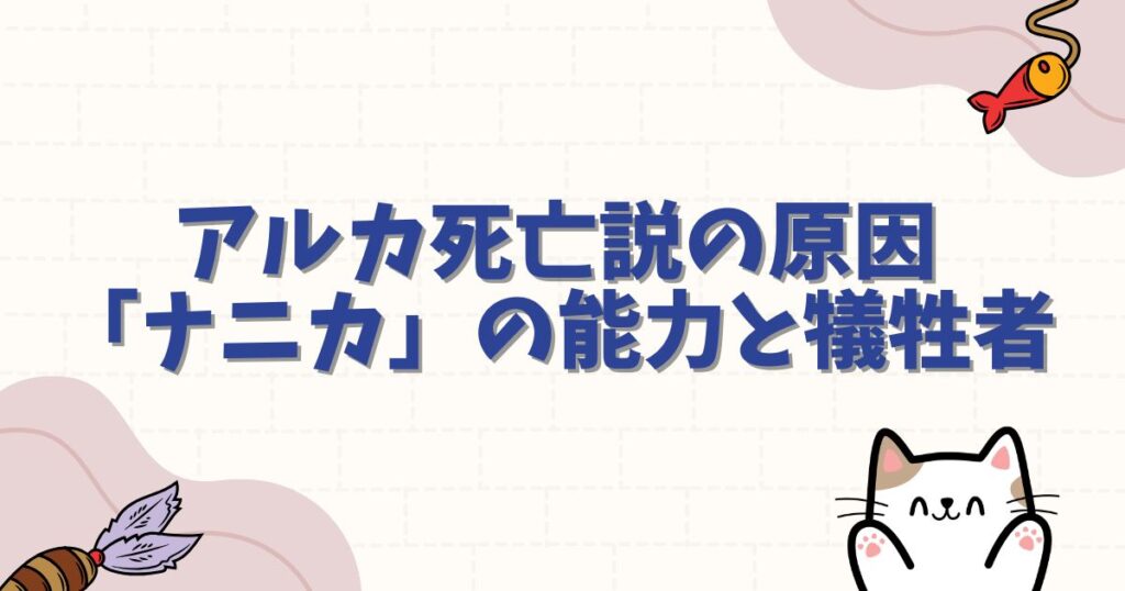 この記事では、アルカの現状と「死」にまつわる噂の真相、そしてナニカの能力がもたらすリスクについて徹底解説します。