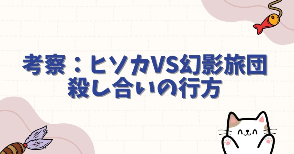しかし、旅団とヒソカの殺し合いが激化し、カキン王家の宝物庫(緋の眼がある場所)へ旅団が侵入すれば、衝突は不可避です。