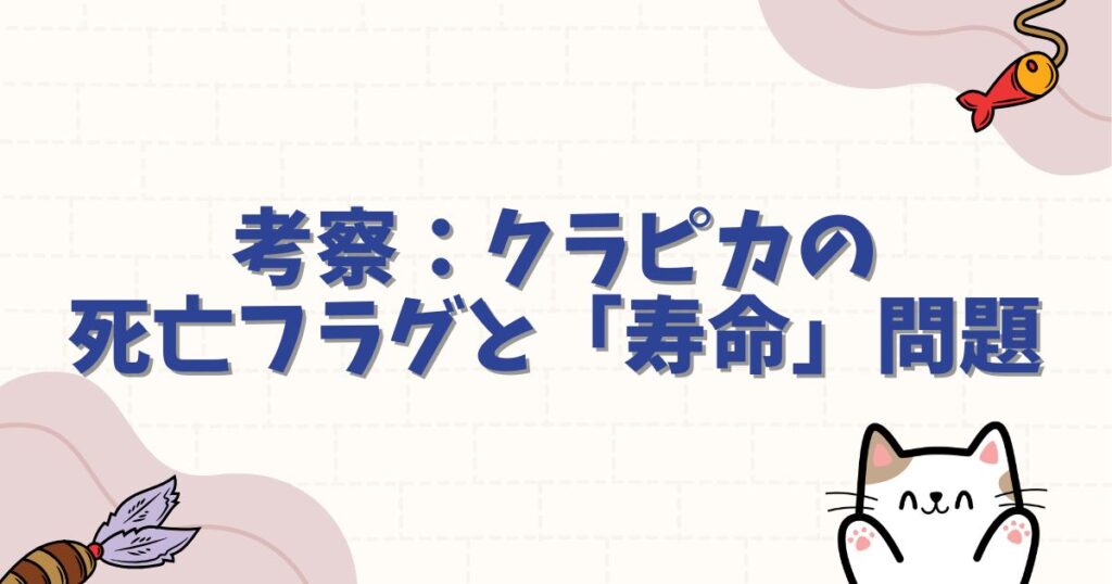 - クラピカは寿命を削りながら戦っており、旅団やツェリードニヒとの衝突で命を落とす危険がある。