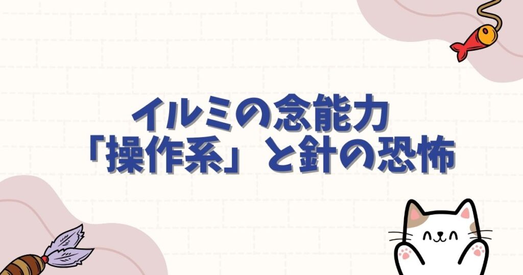 - イルミは操作系の強力な念能力者であり、針を使って人間を支配・操作する。
