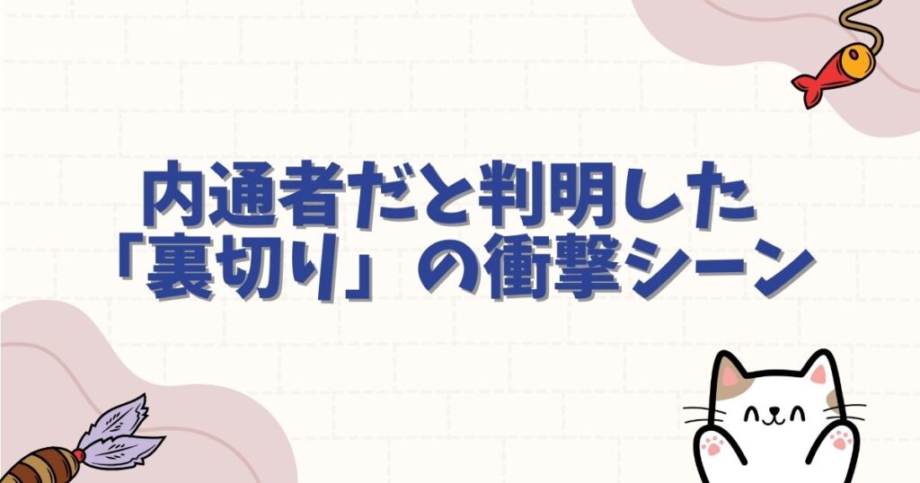 物語の根幹を揺るがす「内通者」の正体発覚は、あまりにも唐突で、そして悲しいものでした。