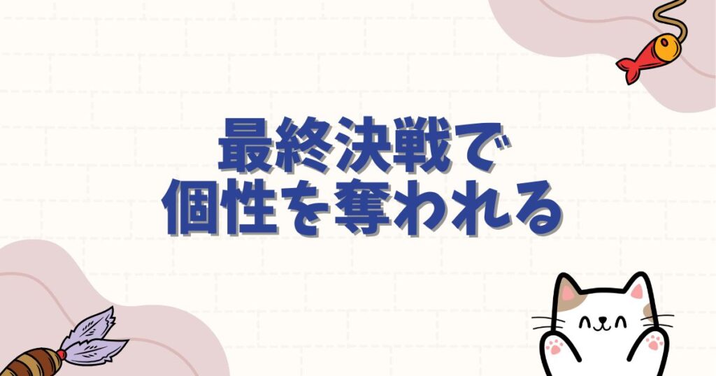 - 個性の消失: AFOに因子ごと奪われたため、再生能力も失われた