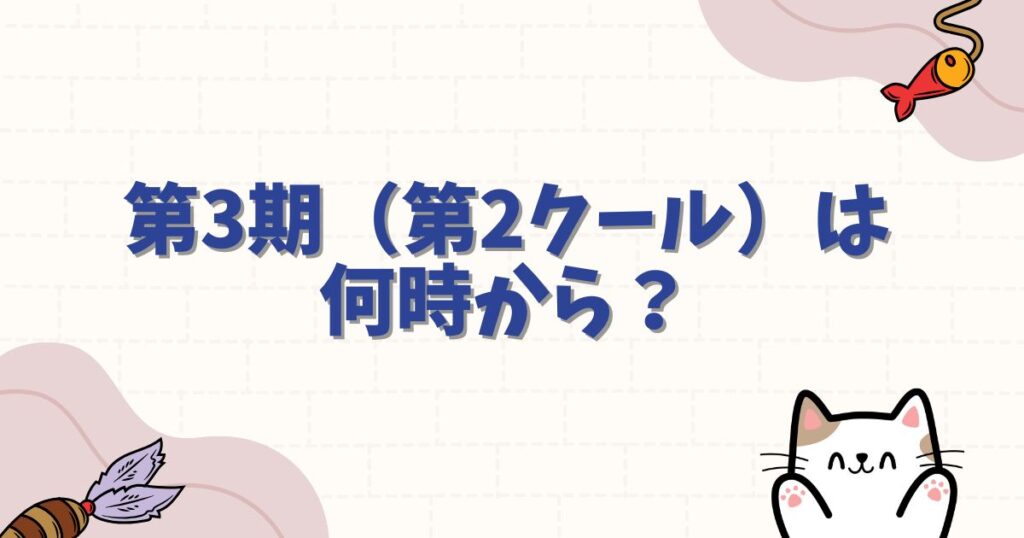 放送時間の変更や、第2クールの正確な開始日時は、公式サイトや公式X(旧Twitter)で最初に発表されます。